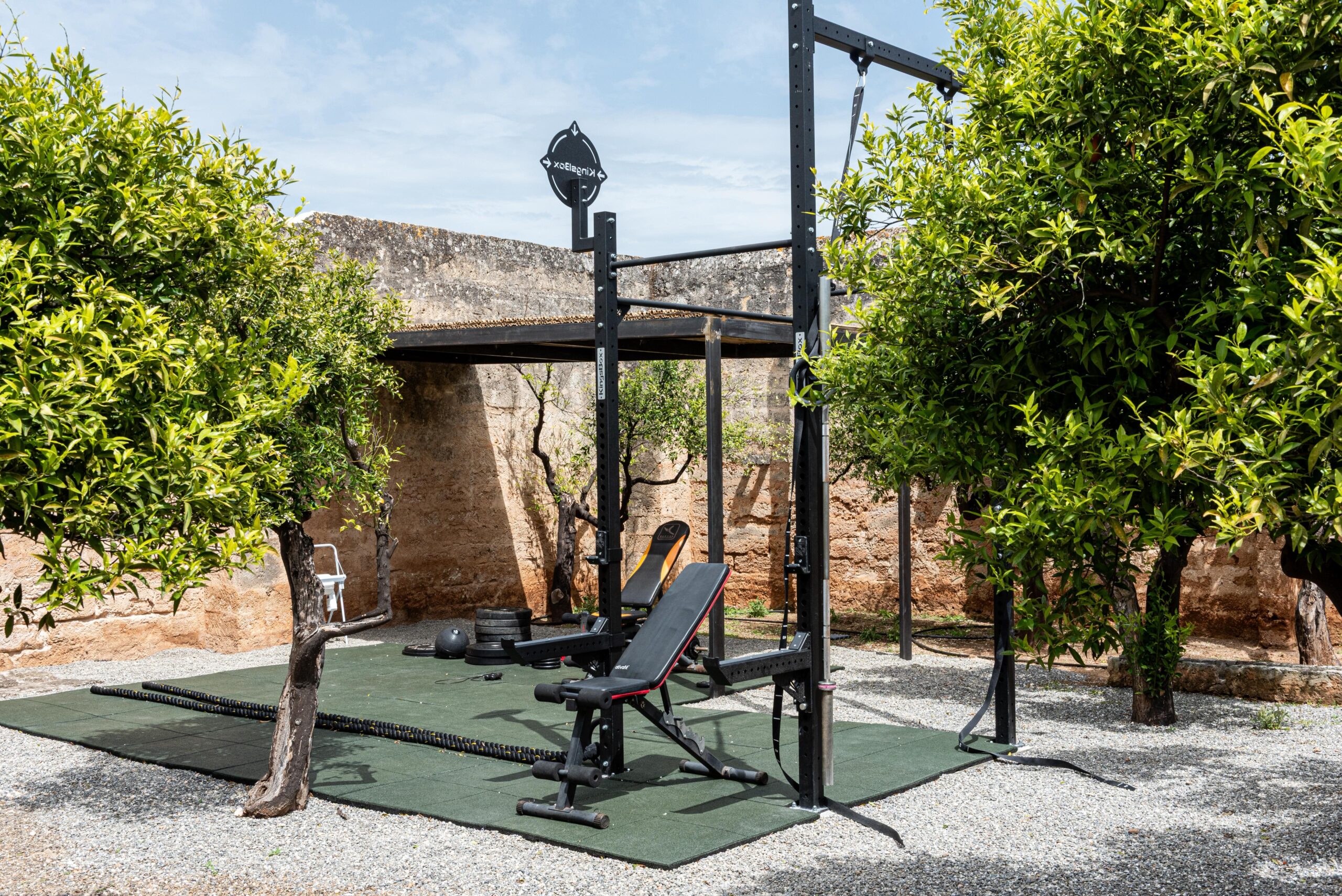 Immersa nell’aranceto della struttura e completamente a cielo aperto, la palestra è organizzata per allenamenti di forza, corpo libero e funzionale.
